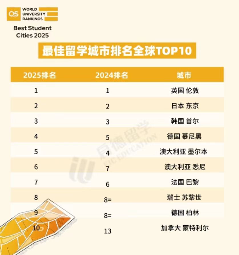 2025QS最佳留学城市排名发布,德国两大城市全球前十!