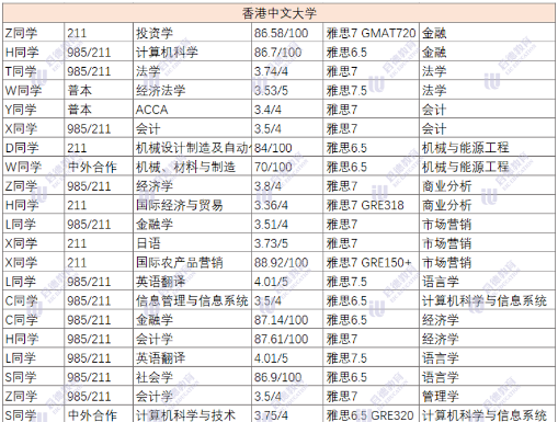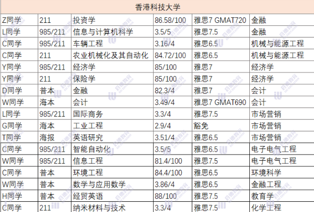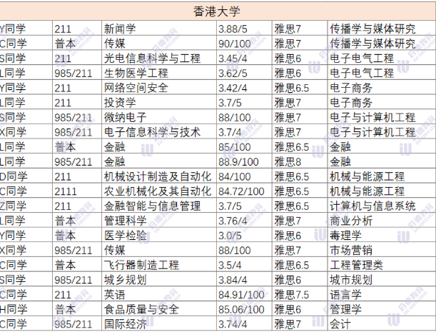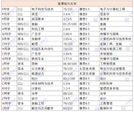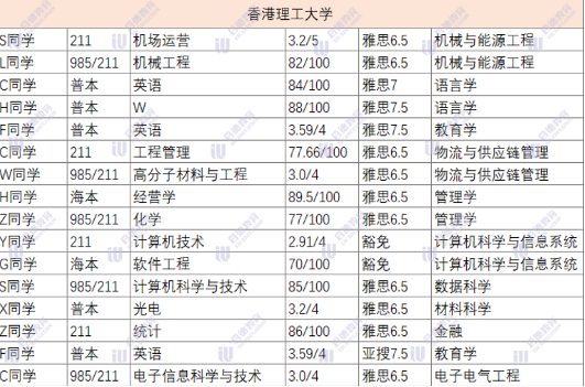 香港理工大学和香港港城市大学超过半数的录取者是985&211院校,雅思成绩6.5以上的同学占比较大,超大半数的同学gpa均分在80以上。城大偏爱211/985及海本的学生,尤其是热门商科专业