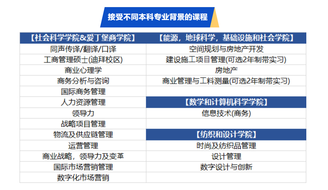 跨⽂化交流、心理学、会计、经济学及金融、商业管理、语⾔及MBA