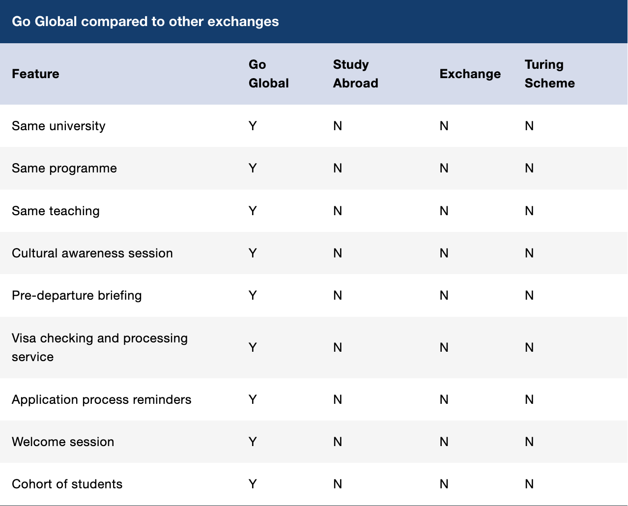 不同于普通的交换项目,瓦特全球学习计划:在同一所赫瑞-瓦特大学就读转换校区,就读同一个专业 转换校区,享受同样的教学转换校区,与同一届同伴学习转换校区,学位完全一致除此之外,还有文化融入课程+行前说明+签证协调支持+申请进度提示+欢迎课程。帮助所有参与计划的小伙伴更快更好的适应不同国家的文化风物。