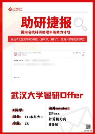 恭喜启德国内211院校的大二本科生C同学收到武汉教授的暑研offer!