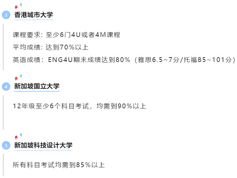 读OSSD的学生之所以能免雅思直接申请海外名校,其原因是能用OSSD课程中的ENG4U成绩作为语言成绩,递交留学申请。目前新加坡、中国香港等国家地区的部分院校都认可OSSD学生用ENG4U成绩直接代替雅思或托福,作为语言成绩递交申请。