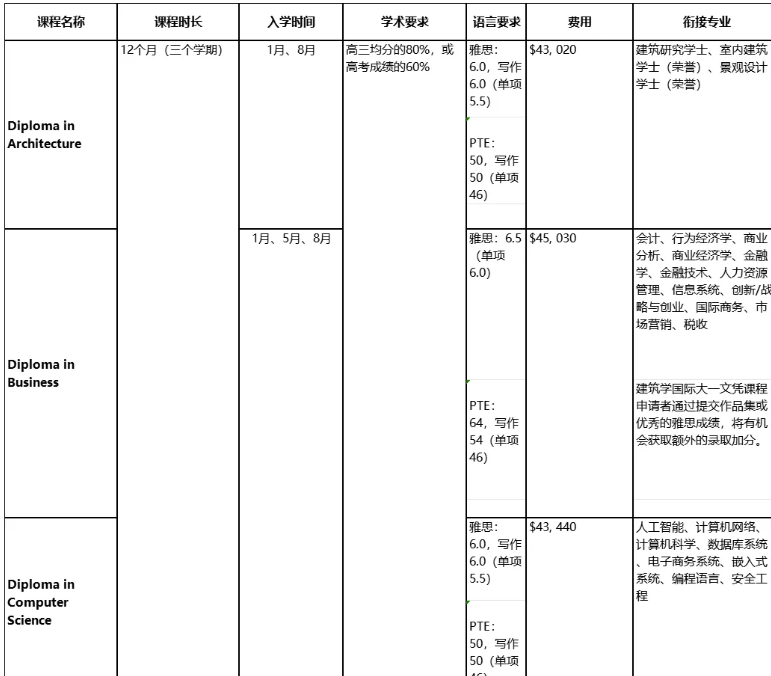 首先要注意的是:墨尔本大学、悉尼大学、昆士兰大学、澳洲国立大学是没有Diploma课程的。