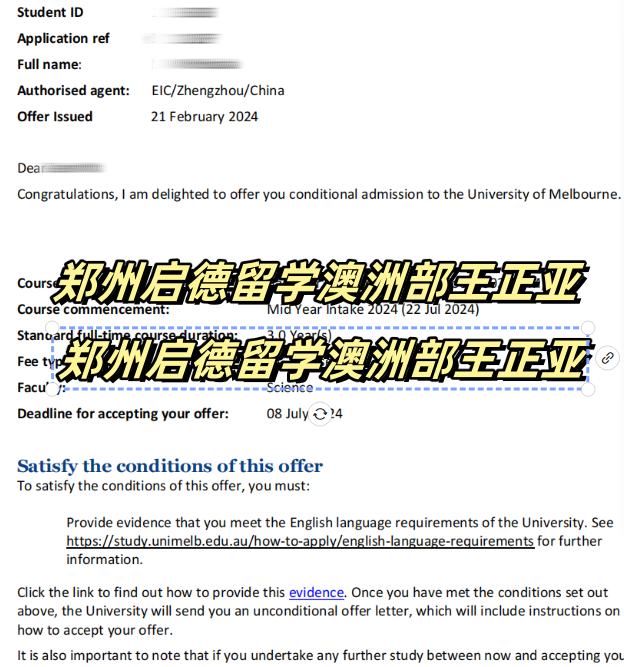 学生是在国内gap了1年,终于决定赴澳留学,申请的还是墨大竞争非常激烈的专业。家长和学生焦虑的不行,我们这边专业且高效的把时间规划以及整体安排列的清清楚楚,就立马帮学生递交了申请,中间学校还要求补交材料,经历了漫长等待,终于拿到了录取。后续的流程我们安排的井井有条,顺利帮助学生进入墨尔本大学。录取学校:墨尔本大学录取专业:Bachelor of science平均分:ABB
