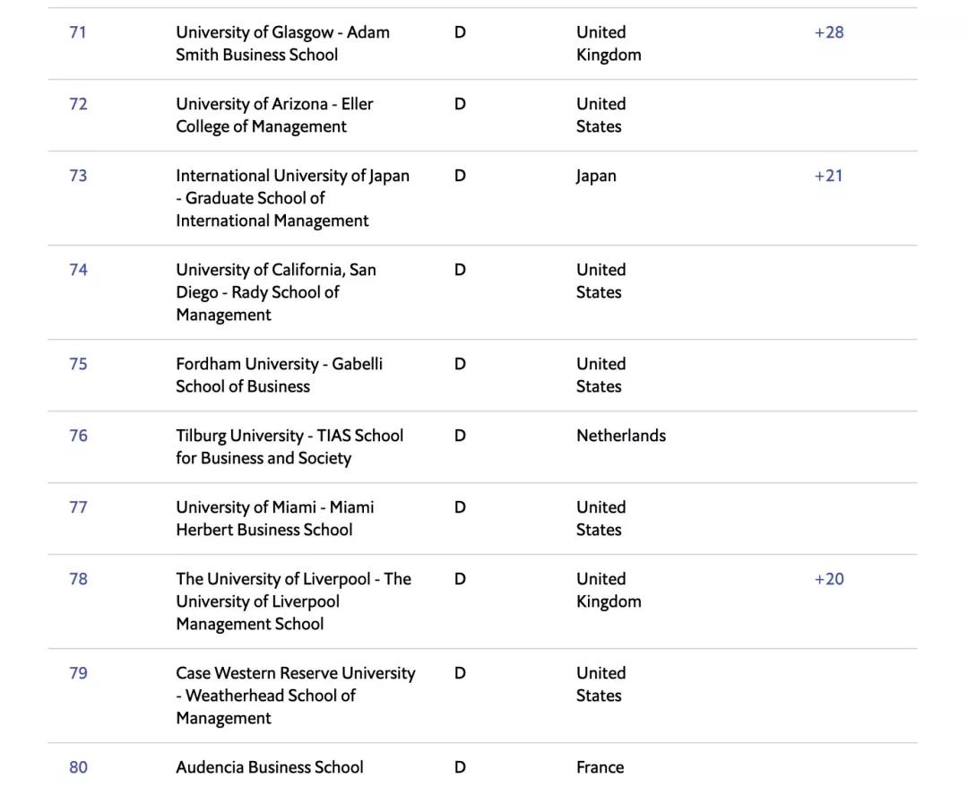 今年经济学人一共邀请了165所学校参与评选,但其中有75所学校因为疫情影响下数据不充足、自愿放弃评比、不进行调研等原因没有出现在榜单中。美国众多商学院包括M7商学院,英国的牛津剑桥都自愿放弃了评比,这无疑会对这些学校的排名声誉造成影响。