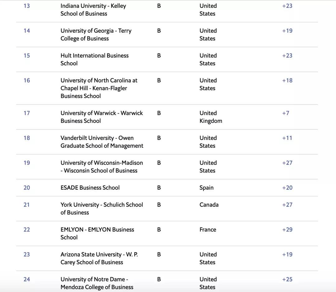 一共有18个商学院被评为B级,足以展示美国MBA项目的地位