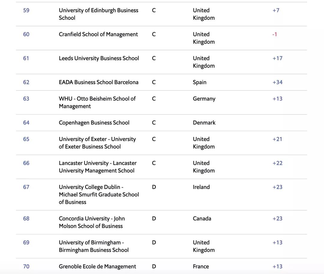 虽然牛剑、帝国理工商学院没有参与评选,还是有12所英国院校上榜,但遗憾的是没有一所入选A级;