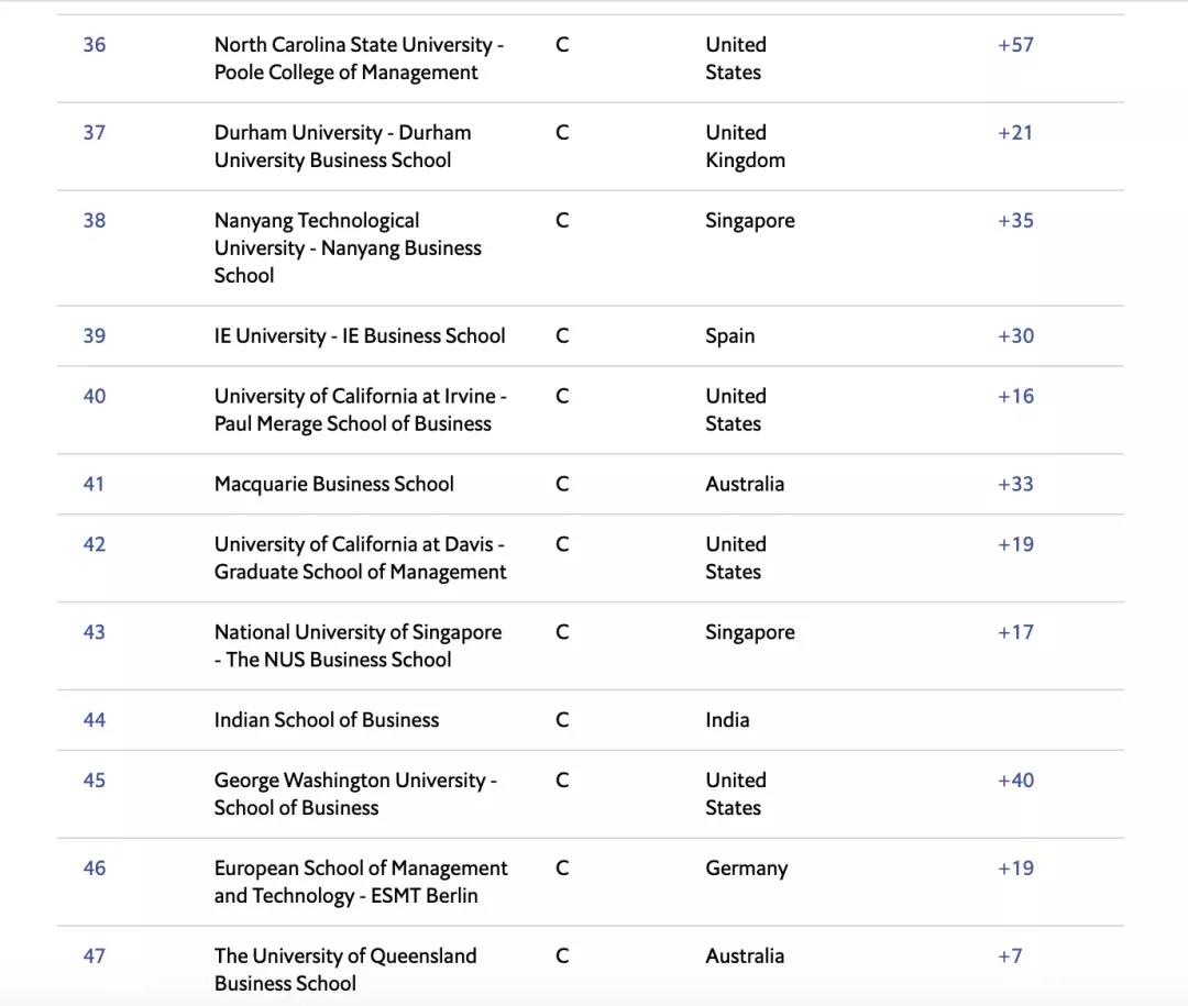 与其他榜单不同的是,经济学人MBA榜单并没有排名并列的情况。但是排名相近的商学院差距非常的小,经济学人将商学院的MBA项目进行了评级(A-E),旨在将分数相近的MBA归为同一等级。