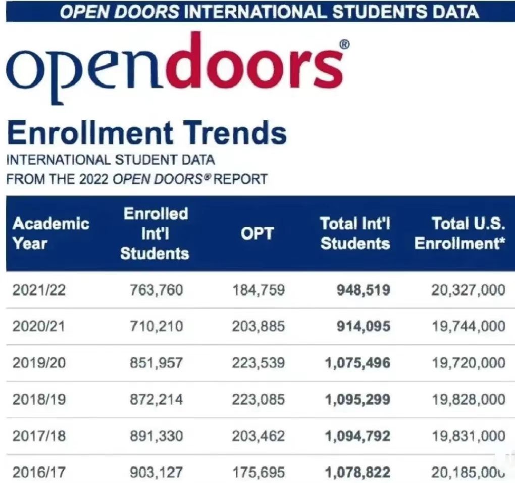 美国作为老牌的留学意向国家,在疫情的情况下,2020、2021学年的留学人数虽然有所下滑,但随着2022年随着情况的好转,美国留学生的总数回弹到了94万多人,较上年增长了34,424人次,也是近年来增长速度飞快的一年!