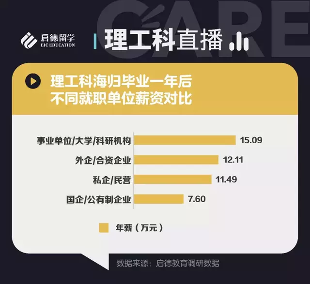 小启最后和大家来看一下理工科毕业一年后不同就职单位的薪资对比: