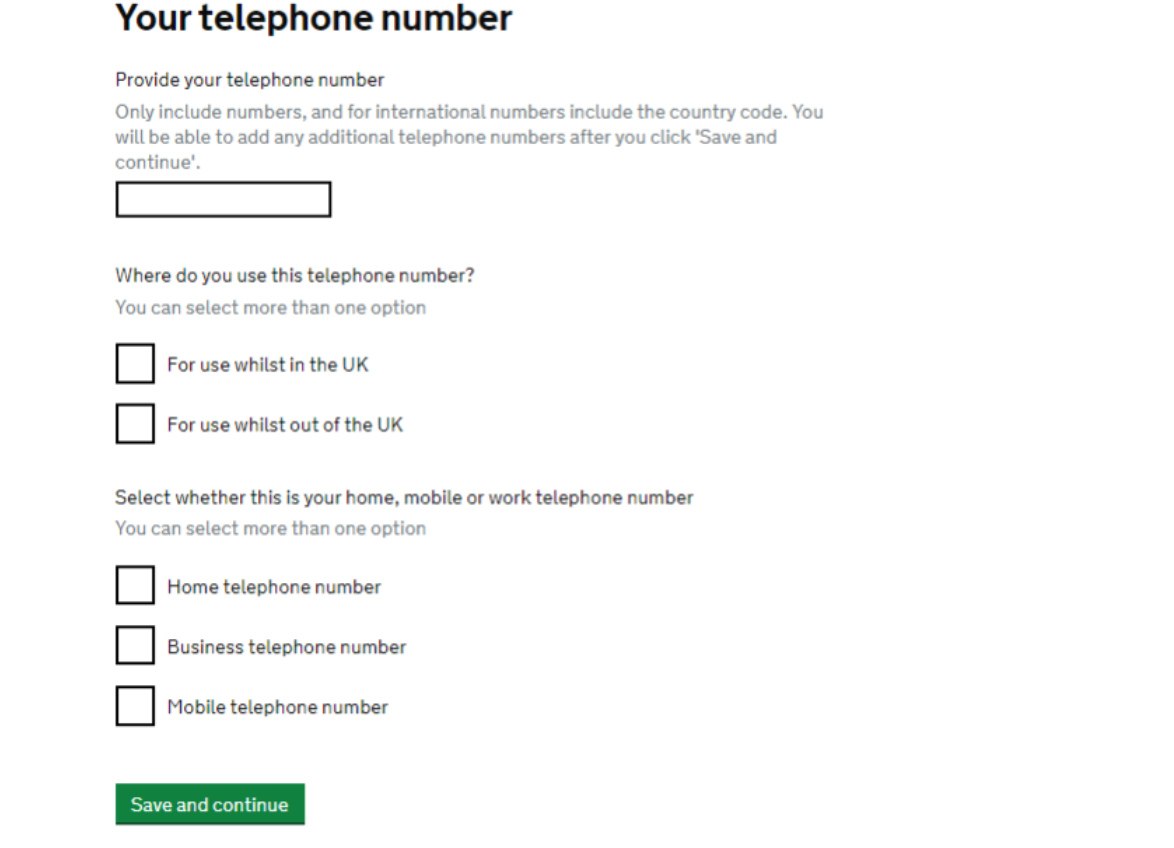 第一个问题是你是否是帮别人填写此表格,一般同学们都是自己填写,直接选择No就可以。接下来是填写电话号码。这里同学们填写英国号码或中国号码都是可以的。英国号码要填写区号+44,中国号码+86。