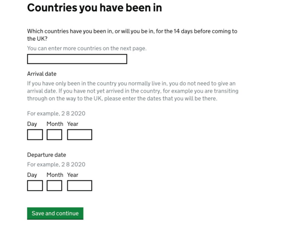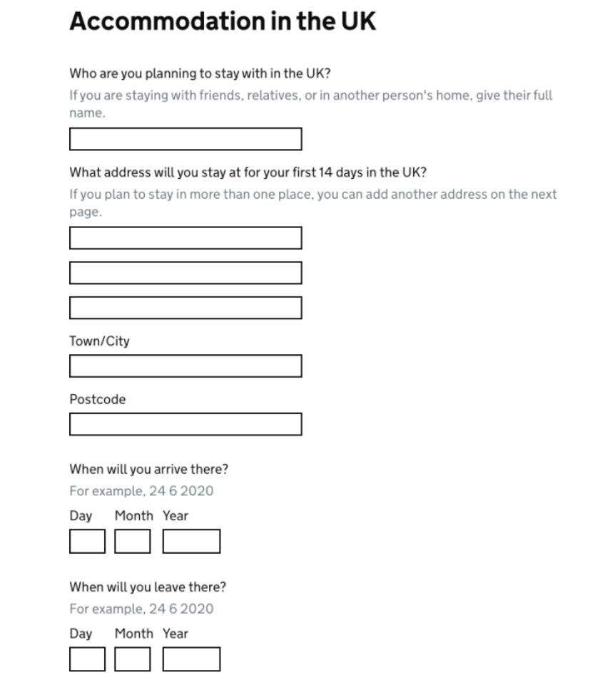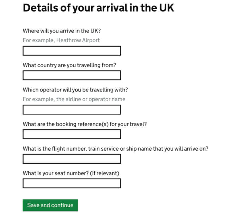 如果是从国内直飞英国的同学,在常驻国家那栏直接填写China就好,其他部分不需要填写,如果购买的机票是需要在其他国家转机,则需要进一步填写。