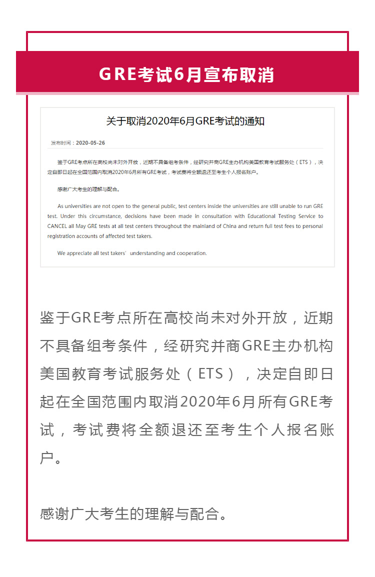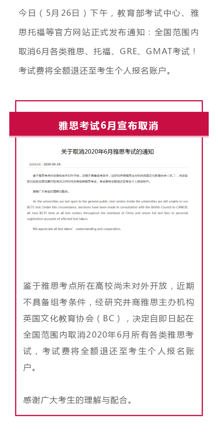 定了!四大考试同时宣布:6月雅思托福GRE/GMAT全取消!
