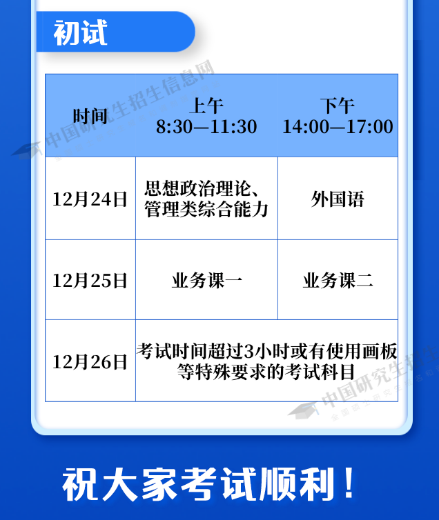 教育部近日印发《2023年全国硕士研究生招生工作管理规定》(以下简称《规定》),部署各地各招生单位统筹做好疫情防控常态化条件下的研究生考试招生工作。2023年全国硕士研究生招生考试初试定于2022年12月24日至25日,考试时间超过3小时或有使用画板等特殊要求的少数考试科目安排在12月26日。