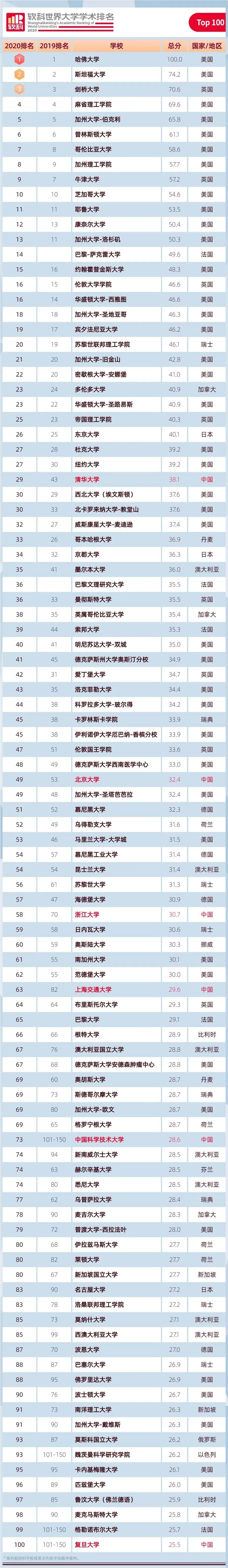 重磅!2020年软科世界大学学术排名发布,英美大学继续霸占top榜单!
