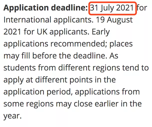 还有一部分专业的暂定截止日期为7月31日,但也有可能提前截止申请。包括: