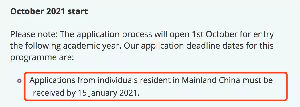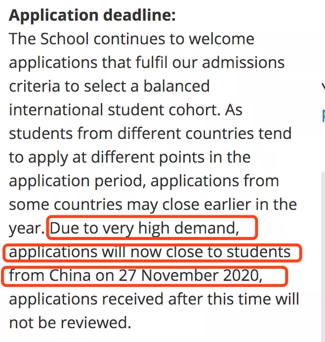 以下专业将提前截止来自中国学生的申请受理,截止日期为12月7日。
