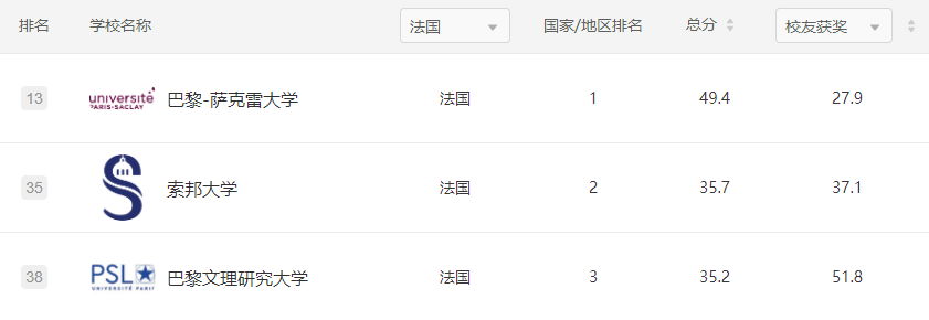 从教育水平上来看,法国公立综合大学国际排名逐年上升,在 2021年上海交大软科排名中,其中比较突出的有:巴黎萨克雷大学排名全球第13位,索邦大学上升到全球35名,巴黎文理研究大学全球38名。 那么这些排名出色的法国院校有什么特点?哪些是名牌专业?是否适合我就读?今天小启就为大家隆重种草一波法国的宝藏院校~ 这是一所于2014年12月29日在法国巴黎南郊萨克雷组建的巨型大学,是世界顶尖名校。校园面积达 1,350 英亩。未来将有约 60,000 名学生与10,500 名科研人员。巴黎-萨克雷大学筹委会主席 Dominique Vernay 称该大学的办学目标是世界大学学术排名前十,欧洲大陆第一。 现学校成员包括:巴黎十一大 (Université Paris-Sud) 、凡尔赛大学 (Université deVersailles-SaintQuentin)、埃夫里大学 (Université d'evry-val-d'essonne) 、萨克雷高师 (ENSParis-Saclay) 、中央理工-高等电力学院 (Centrale-Supelec)、光学研究所 (Institut d'optique Granduate School) 以及七个研究机构。 学校在本科硕士和博士阶段开设多个专业,包括:生物多样性,农业与营养,社会,环境 ;生物,医学,制药;法律科学;人文;工程,计算机科学技术;基础科学;社会科学。 2021软科世界一流学科排名中巴黎萨克雷大学有25 个学科排世界 Top100名:数学世界排名第1;物理学世界第9, 欧洲第一;农业世界第12;临床医学世界第22;电信工程世界第29;统计学世界第29;生物技术世界第30;药学和制药科学世界第30;自动化控制世界第32;机械工程第41。 学校本科及硕士课程由于招生名额有限,采取先到先得的申请制度,因此同学们要提早准备;此外,学校在审核申请人材料的时候,比较注重专业匹配度以及是否修读过相关课程,小启建议申请人在申请前做好相应的课程匹配工作。 坐落于巴黎的公立研究型大学,由巴黎第六大学与巴黎第四大学于2018年1月1日合并而成。索邦大学共有34 位诺贝尔奖、菲尔兹奖以及图灵奖得主。其中有6位菲尔兹奖得主中在巴黎科学学院完成博士学位或留任教授研究员,是索邦大学主要的师资力量。 索邦大学现约有53400名学生和3400名教师,主要由理学院,医学院和文学院 3 个学院组成。新建了7个跨学科联合实验室,并计划开设理工学科和人文学科相结合的复合型专业。索邦大学在巴黎拥有5个主校区。在全法范围内,索邦大学共拥有 26 个校区和 3 个海洋站。 索邦大学对于专业课程匹配度和国内绩点有一定要求,语言要求相对严格,但是同学们满足A2+法语水平即可申请赴法学习语言。另外,小启建议申请高年级的学生,可以考虑同时申请本科最后一年和硕士第一年。 2010年法国教育部批准将巴黎地区九所高校及研究所进行合并,组成一所世界顶尖综合性大学-巴黎文理研究大学。其组成单位包括巴黎高等师范学院、国立巴黎高等化学学校、巴黎第九大学、国立巴黎高等矿业学校、居里研究所、法国国家科学研究中心、法国国家信息与自动化研究所、法国国家健康与医学研究院等名校。 截至2017年8月,巴黎文理研究大学共培养了3 位法国总统,1 位塞内加尔国总统,而 PSL 的校友、教授及研究人员中共走出了 33 位诺贝尔奖得主、14 位菲尔兹奖得主、38 位凯撒奖得主、71 位莫里哀奖得主。 巴黎文理研究大学提供从学士到博士阶段的全面教育。其专业领域包含天文、艺术创作、数学、古典人文领域等等各种学科。除了传统的各个学科学位学程之外,巴黎文理研究大学的合并还开创了新的学习科目和流程,包括:高等研究的多学科(博雅教育)阶段、科技与创新研究所、“科学艺术创作研究”博士等。其教育方针尤其重视研究与跨学科学习。目前,该校约有17000名学生。 巴黎文理研究大学的成员学校都是法国的名校,大家仍然需要提前准备为妙。对申请人的学历背景,学术成绩,语言成绩都有一定要求,但同样的是同学们可以申请语言学校提前熟悉课程。部分专业需要提供实习证明,启德建议学生在国内积极参加课外活动和实践,增强自己的竞争力和综合能力。