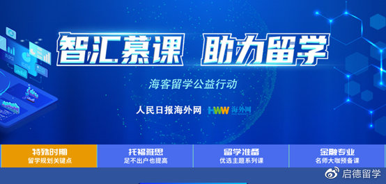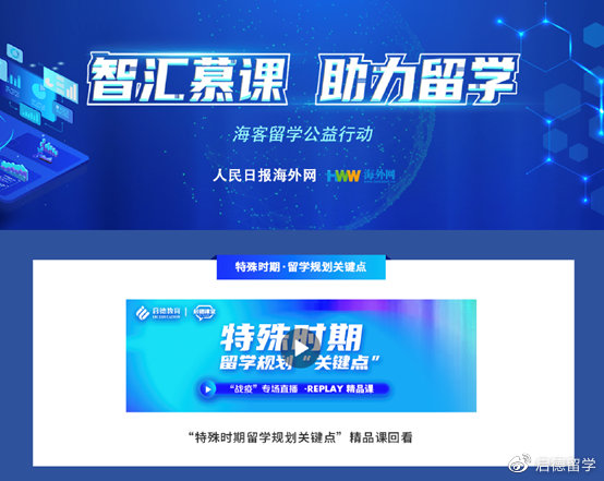由于新冠肺炎疫情,不少准备出国留学的中国学生在出国考试、留学申请和签证办理等方面受到不同程度的影响,很多学生和家长为此非常焦虑。针对这一情况,人民日报海外网联合众多国际教育机构、留学生服务机构启动了“智汇慕课助力留学”——海客留学公益行动。留学群体可通过海客留学慕课平台在线免费学习出国考试知识,知晓留学申请动向,了解最新签证政策。