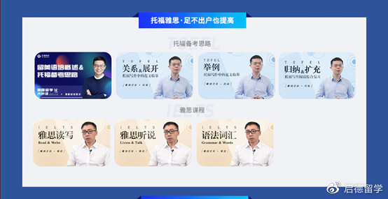 第二部分《托福雅思足不出户也提高》由启德考培托福名师刘文勇和雅思名师陈思清录制的7节高质量备考指导课程组成;