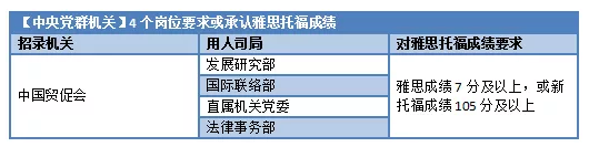 4个中央党群机关岗位要求或承认雅思托福成绩