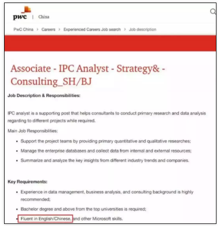 除去国考,不少国内外知名企业也对应聘者有一定的语言要求: