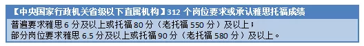 312个中央国家行政机关省级以下直属机构岗位要求或承认雅思托福成绩