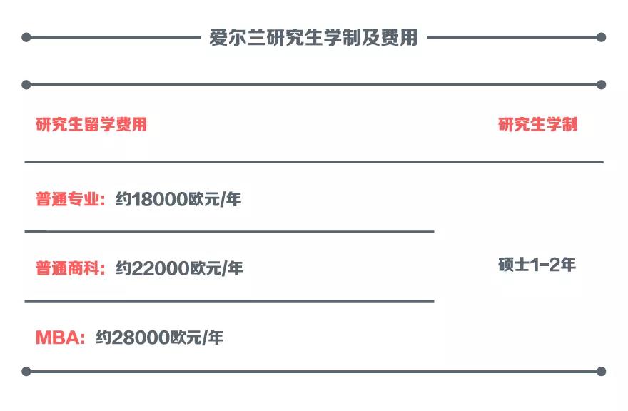 下图为爱尔兰研究生学制及费用: