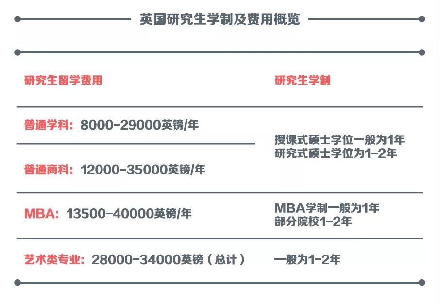 下图为英国研究生学制及费用: