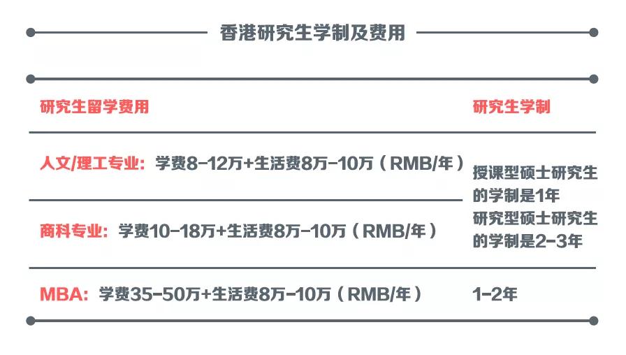 下图为香港研究生学制及费用: