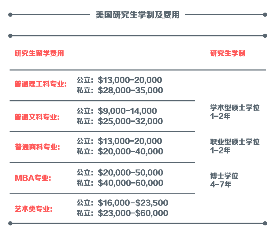 下图为美国研究生学制及费用: