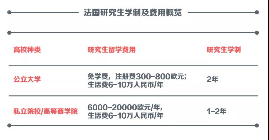 下图为法国研究生学制及费用: