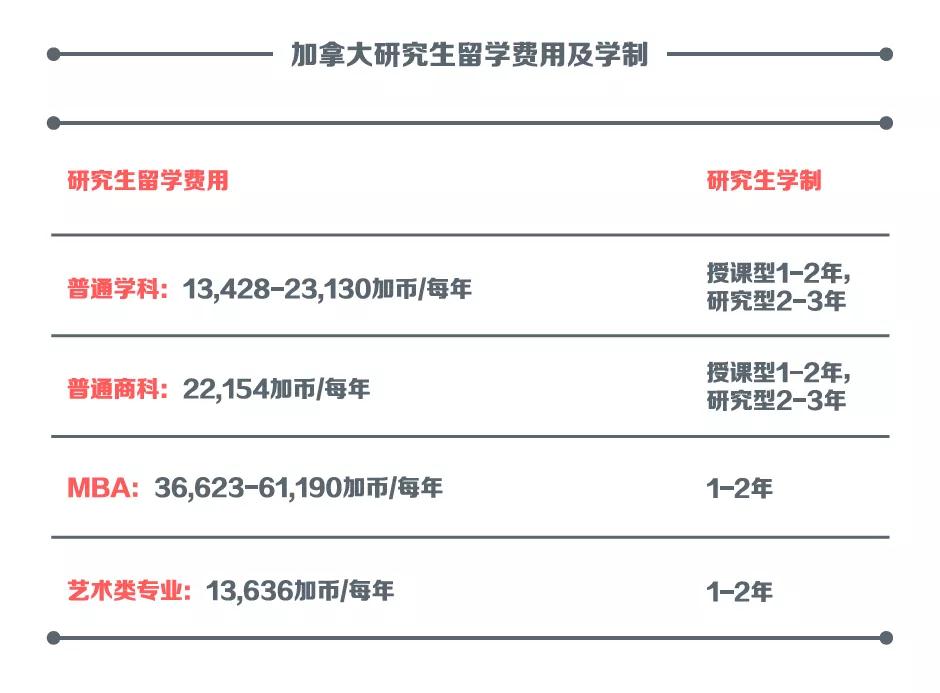 下图为加拿大研究生学制及费用: