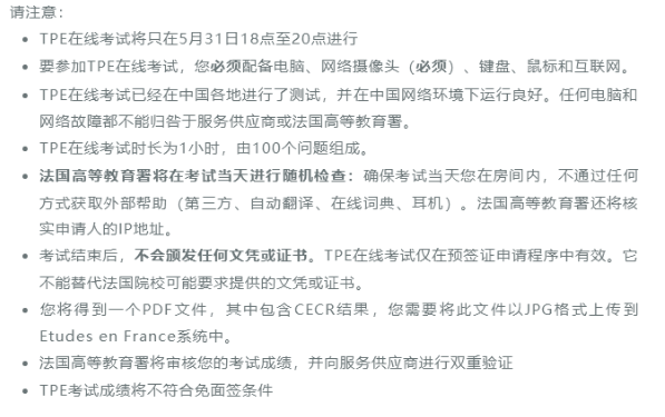 考虑到目前全国特殊的疫情防控形式,法国高等教育署对学生的英语考试类型作出如下调整: