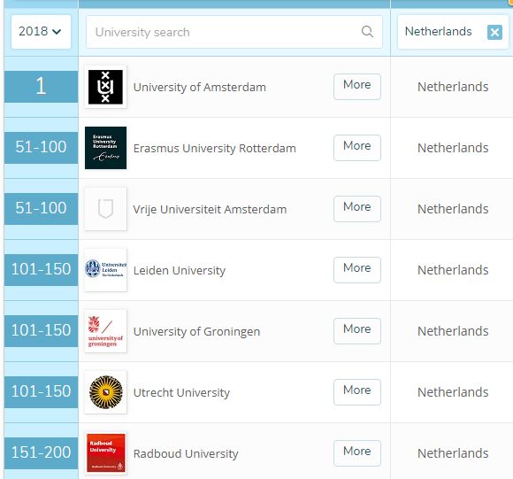 首先荷兰一马当先,除了4所理工类的大学没有传媒专业之外,其他的学校基本上都进入了世界200强之内。荷兰的传媒类教育和研究发展和它的商科一样非常迅速。