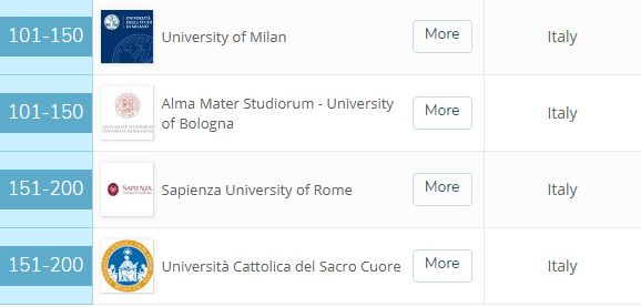 当然南欧的国家也是不甘示弱的,意大利和西班牙拥有很多专业在前200的顶尖公立大学。