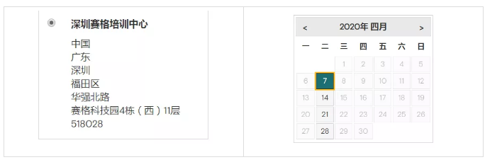 *深圳赛格培训中心,剩余考位日期:4月7、14、21、28日