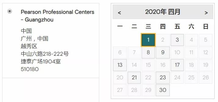 *Pearson Professional Centers-Guangzhou,剩余考位日期:4月1、3、8、9、13、17、21、23、30日