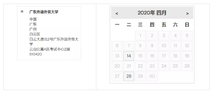 *广东外语外贸大学,剩余考位日期:4月14、28日