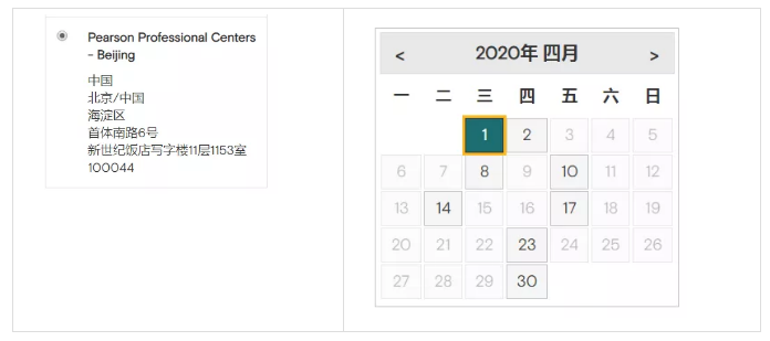 *Pearson Professional Centers-Beijing,剩余考位日期:4月1、2、8、10、14、17、23、30日