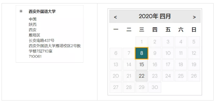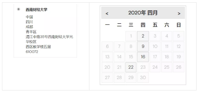 *西南财经大学,剩余考位日期:4月2、9、16、22日*西安外国语大学,剩余考位日期:4月8、15、22日