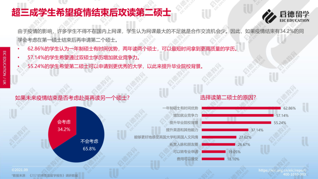 根据启德《2021英国留学报告》对学生的调研结果来看,有超过三成的学生希望攻读第二硕士。