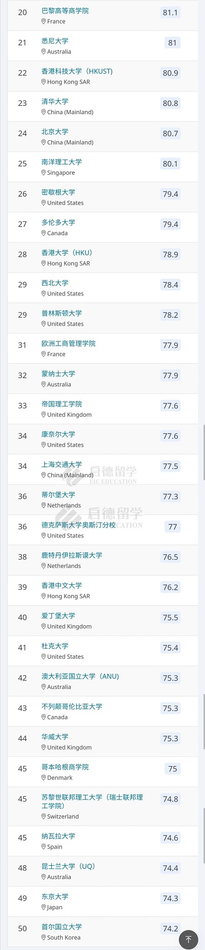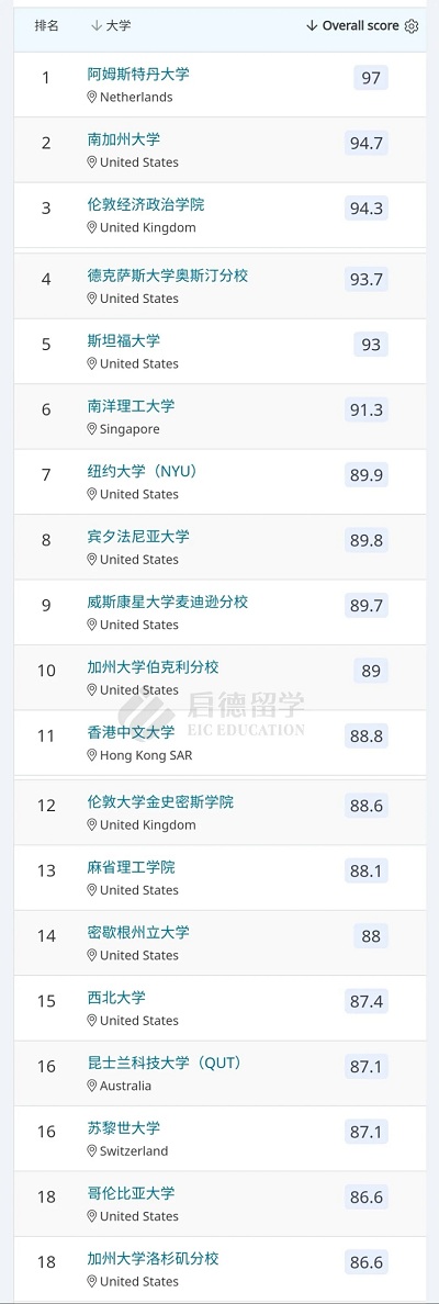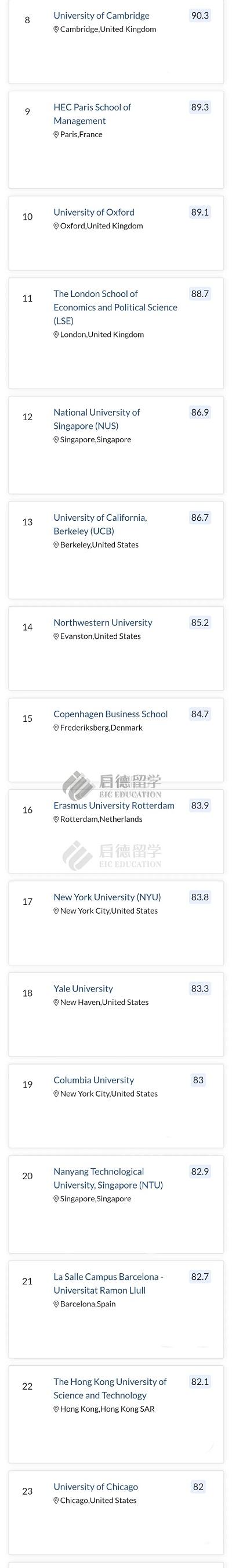QS将金融与会计合并成了一个专业,并且市场营销的排名会单独发布排名。那么,今天就为大家截取QS其中九个热门专业的排名。