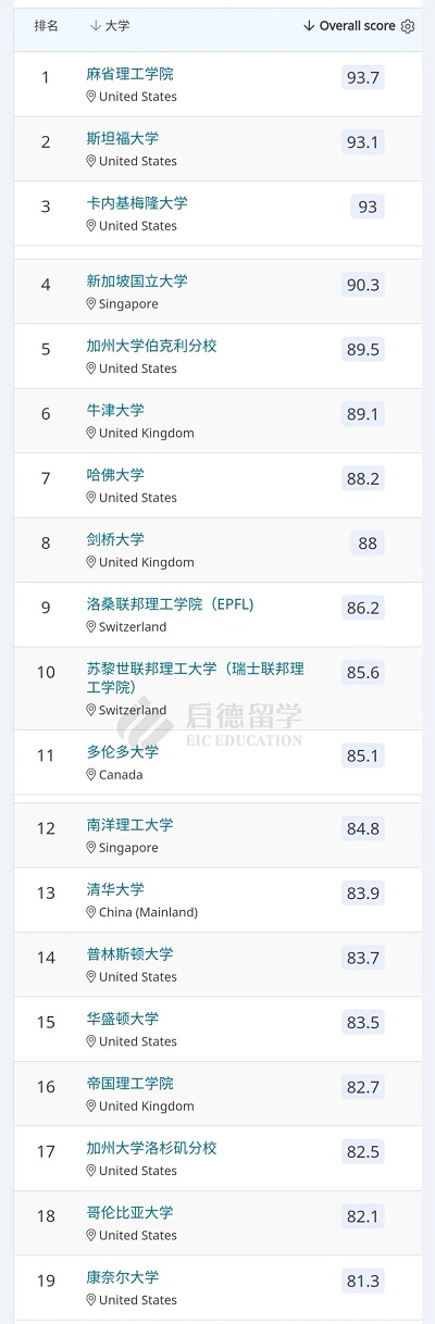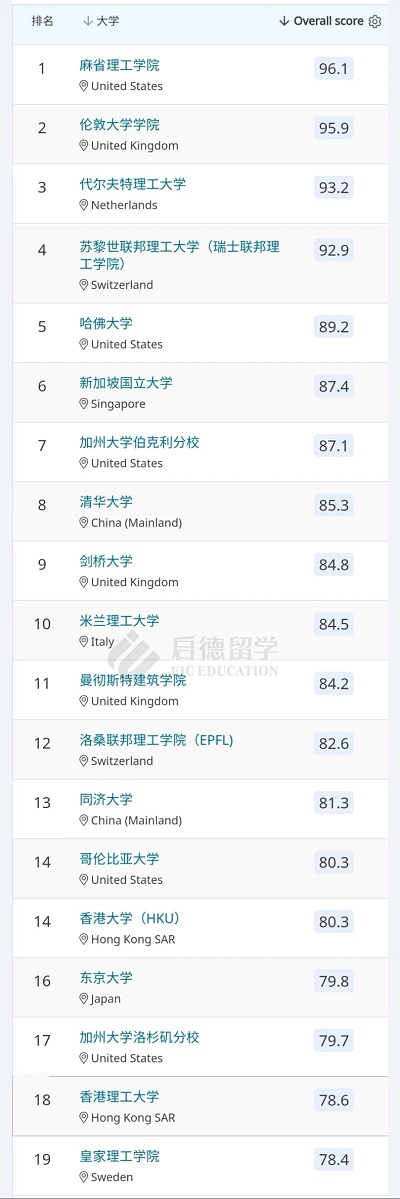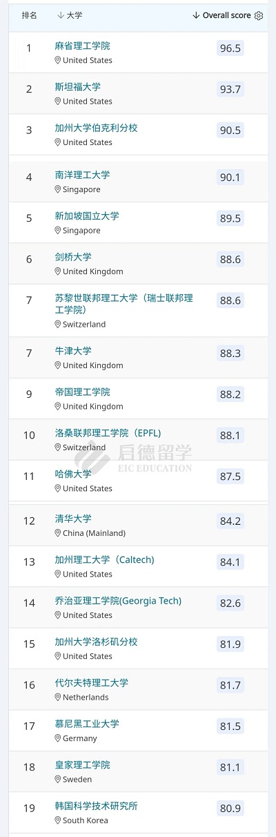 具体包含7个专业科目:计算机科学与信息系统、机械&航空与制造工程、化学工程、土木工程、电子电气工程、矿物与采矿工程、石油工程,每个科目都有单独的科目排名。