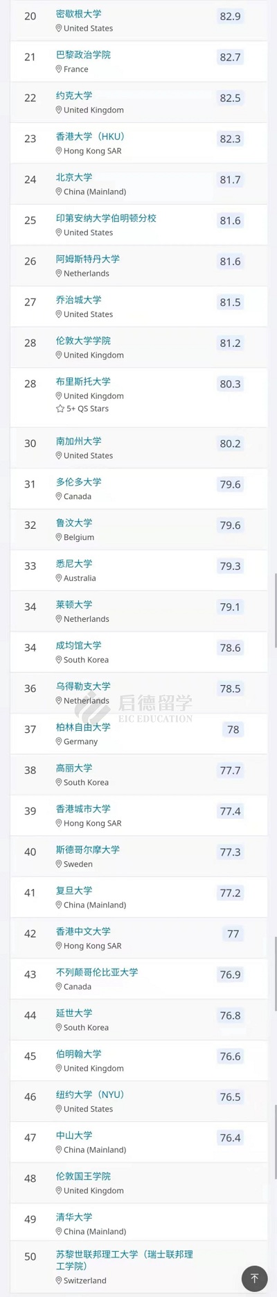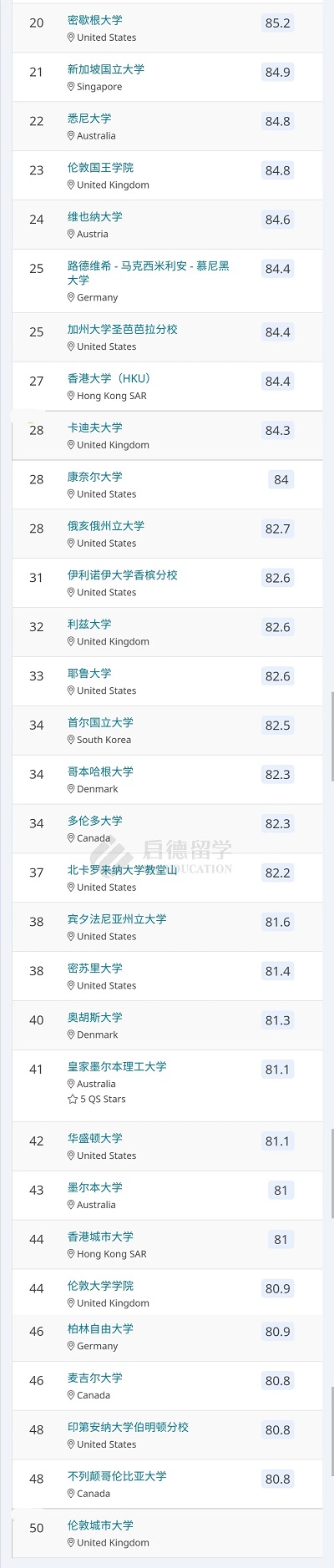 2021QS世界大学学科排名看不懂?来看看启德专业解读