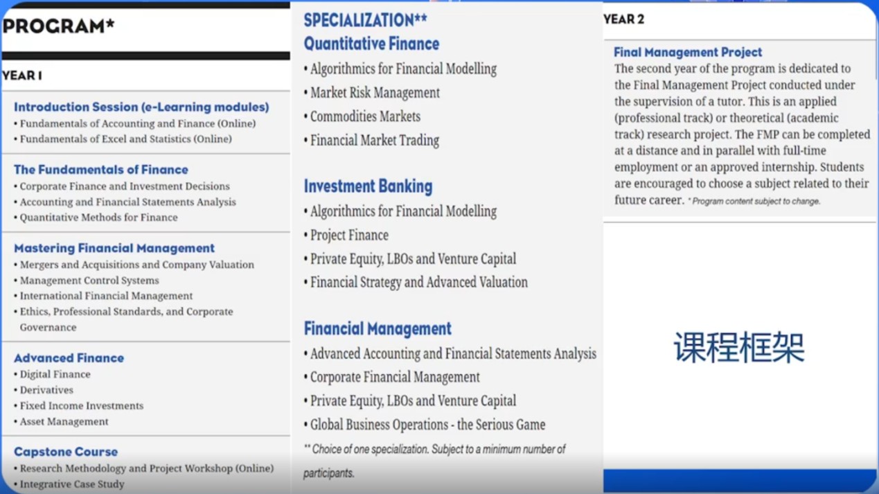 金融硕士课程框架: