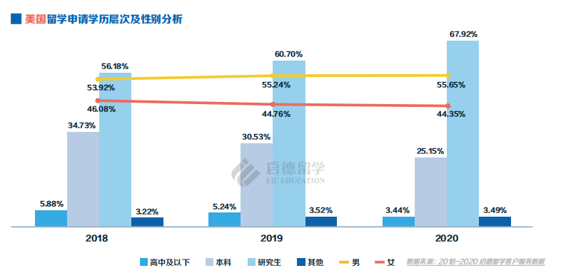 2020 年超 8 成选择研究生留学,男生申请占比持续升高