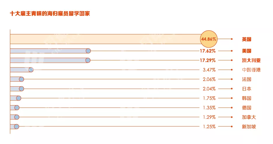 数据显示,人数排名前10 位的国家或地区分别是英国、美国、澳大利亚、中国香港、法国、日本、韩国、德国、加拿大、新加坡。其中,英国占比最高,达到了44.86%,其次是美国(17.62%)、澳大利亚(17.29%)。