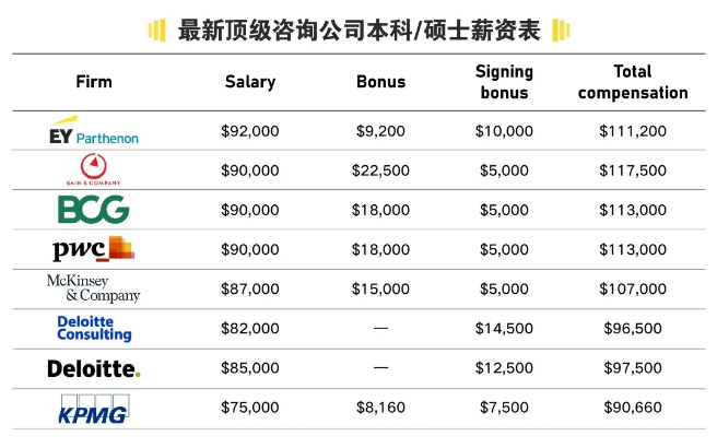 以宝洁为例,各部门起薪在10-20w,14薪,一年25%-30%的薪资涨幅,热门MKT部门甚至每半年涨薪30%。工作满3-4年后,除了能拥有管理层40-50w的年薪,还可以享受到购房无息贷款,这样的500强平台谁不想要!当然,提到高薪行业的重头戏,一定也不能少了咨询。