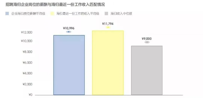 根据智联招聘公布的调查报告显示,企业招聘海归的平均月薪为10996元,高于全国平均招聘薪资近2500元。